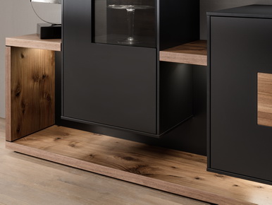 Variable Lösungen für großzügige Raumkonzepte. Mit MEDIA CONCEPT lassen sich Wohnträume unkompliziert realisieren. Durch die vielfältigen Kombinationsmöglichkeiten der Einzelelemente, wie Side-, High- und Lowboards sowie Vitrinen, Hängeschränken und Glasregale bietet MEDIA CONCEPT Ihnen viel Gestaltungspotenzial.