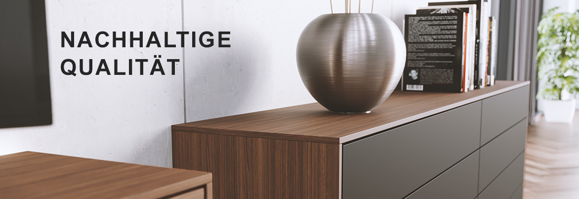 Wir stellen uns immer wieder leidenschaftlich der Herausforderung, unsere hohen Wertvorstellungen von der Idee über den gesamten Produktionsprozess bis hin zum fertigen Produkt zu realisieren. Ausgezeichnet mit dem RAL Gütezeichen „Goldenes M“, geprüft nach RAL-GZ430. Wir verwenden ausschließlich hochwertige Furniere. Dabei beweisen kompetente Furnierspezialisten bei der sorgfältigen Auswahl der eingesetzten Baumstämme, langjährige Erfahrung und handwerkliches Feingefühl. Das von uns eingesetzte Holz stammt ausschließlich aus nachhaltig bewirtschaften Forstbeständen und garantiert den zukünftigen Erhalt der wertvollen Ressource. Unsere seidenmatt lackierten Oberflächen werden mit modernster und umweltschonender Technologie hergestellt.
